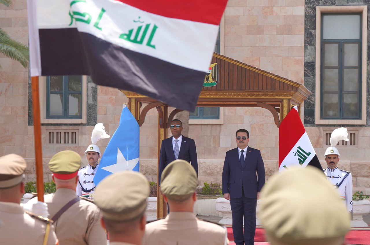 وعبر السوداني، وفقاً للبيان، عن “ترحيبه بنظيره الصومالي”، مؤكداً “استعداد الحكومة للتعاون مع دولة الصومال في مجالات عدة، حيث ينعم العراق اليوم بالاستقرار الذي تحقق بعد اندحار الإرهاب بجهود القوات الأمنية، وكذلك بوحدة الشعب العراقي بجميع أطيافه، والتي كانت عاملاً حاسماً لتحقيق النصر”، مشيراً إلى أن “القوات المسلحة، مستمرة في ملاحقة فلول عصابات داعش الإرهابية المهزومة”.