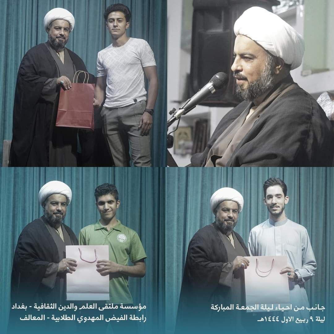 وذكر بيان للمؤسسة، تلقت “النعيم نيوز” نسخة منه، أنه “ضمن برامج روابط مؤسسة ملتقى العلم والدين الثقافية فرع بغداد، المستمر، لإحياء ليالي الجُمع، تستمر روابط مؤسسة ملتقى العلم والدين الثقافية في بغداد، بإحياء ليالي الجمع ضمن برنامجها الأسبوعي”.