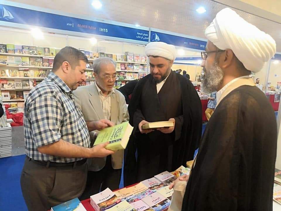 عالم ياباني يزور جناح دار الصادقين في معرض البصرة الدولي