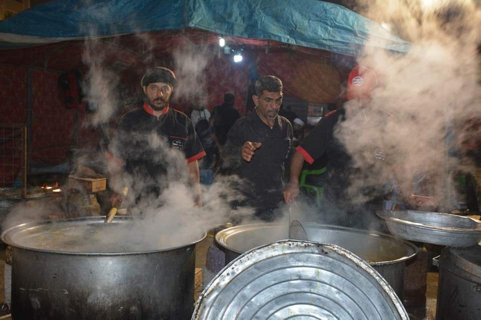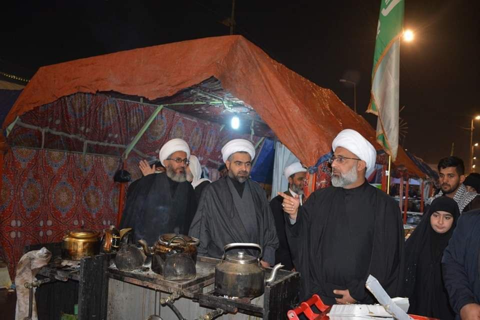 واطلع الشيخ الربيعي على الخدمات التي تقدمها المواكب. للزائرين الكرام والتي تشمل وجبات الطعام والمشويات والمياة الساخنة والمبردة والعصائر بانواعها.