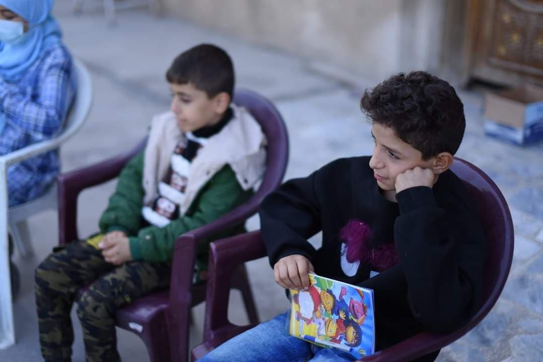 ولفت، إلى أنه “ختم الفريق جلسته مع درس للغة الإنكليزية، ضمن خطة مكيفية لتدريسه، وكذلك متابعة واجبات الدروس السابقة. وتم توزيع هدايا أيضاً للطلبة الملتزمين بالواجبات والمتفوقين فيها”.