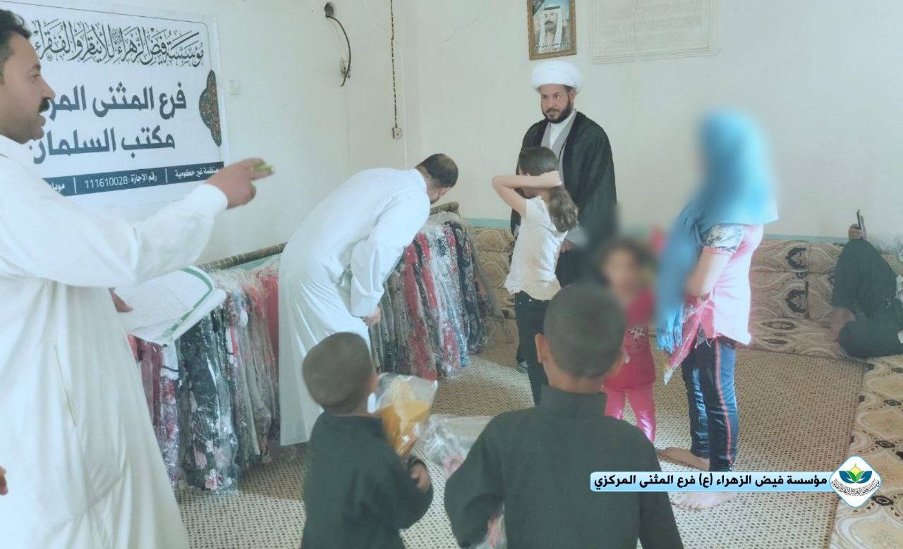 وأفاد بيان للمؤسسة، تلقت “النعيم نيوز” نسخة منه، أنه “ضمن برنامجها الإنساني المستمر لإغاثة العوائل الفقيرة والمتعففة، وبرعاية مكتب سماحة المرجع الديني آية الله العظمى الشيخ اليعقوبي (دام ظله). جهّزَت مؤسسة فيض الزهراء (ع) لرعاية الأيتام والفقراء فرع المثنى/مكتب السلمان، 80 سلة غذائية وأكثر من 200 كسوة ملابس. شملت العوائل الفقيرة والمتعففة في قضاء السلمان“.