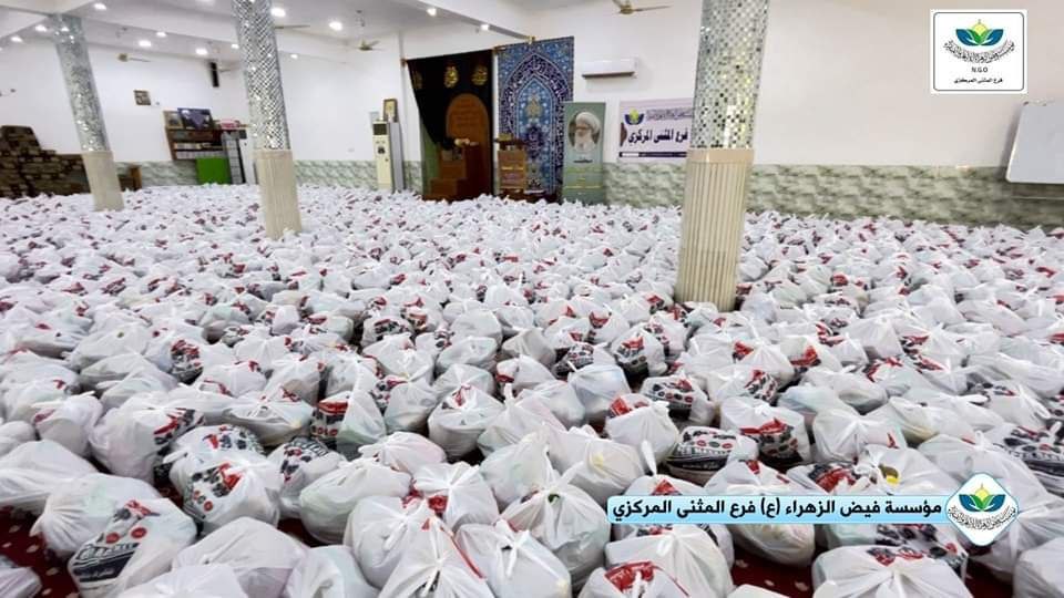 أعلنت مؤسسة فيض الزهراء (ع) في المثنى، اليوم الثلاثاء، عن توزيع أكثر من 2000 سلة غذائية دعماً للعوائل الفقيرة والمتعففة، بمناسبة ذكرى ولادة النبي الأكرم والإمام الصادق (صلوات الله عليهما)، وذلك برعاية مكتب سماحة المرجع الديني آية الله العظمى الشيخ محمد اليعقوبي (دام ظله).