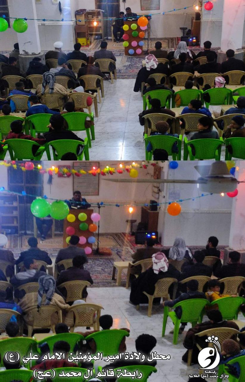 وذكر بيان للرابطة، تلقت “النعيم نيوز” نسخة منه، أن “رابطة قائم آل محمد (عج) الطلابية الشبابية/إحدى تشكيلات مؤسسة ملتقى العلم والدين الثقافية فرع المثنى، أقامت محفلها السنوي بمناسبة ذكرى ولادة مولانا أمير المؤمنين الإمام علي بن أبي طالب (سلام الله عليه)، ومشاركة نخبة من المشايخ والشعراء والرواديد”.
