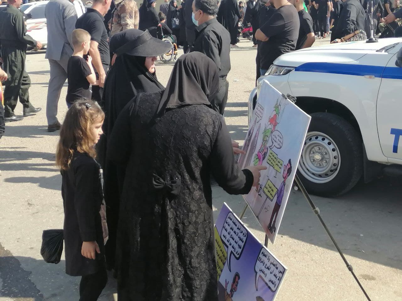 6- توزيع الجواريب والمعاصم للنساء وتعليم الهدف من ارتدائها