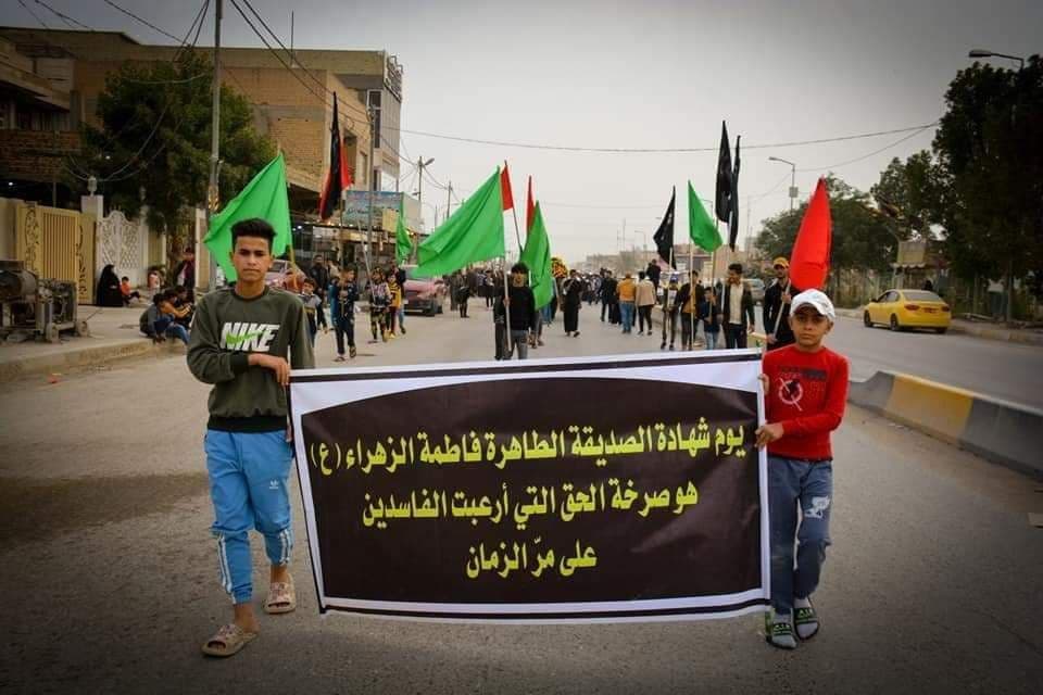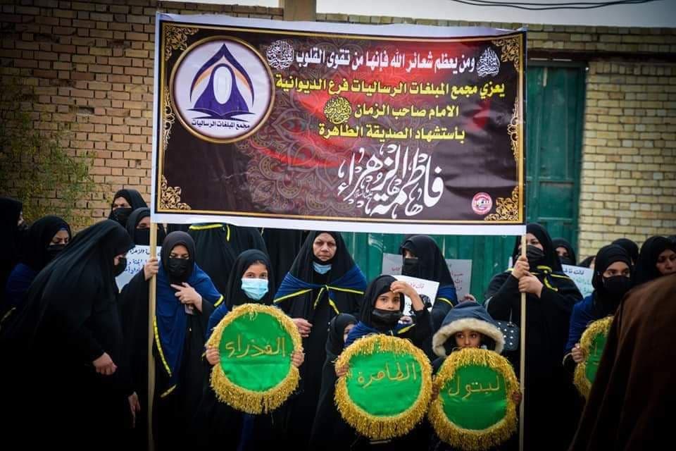انطلق، اليوم السبت، التشييع الرمزي لنعش الصديقة الطاهرة فاطمة الزهراء (ع)، لأهالي محافظة الديوانية جهاراً نهاراً، بحسب الرواية الثانية لاستشهادها.