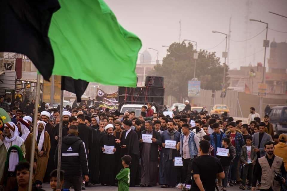 وذكر مراسل “النعيم نيوز”، أن “جموع المعزين انطلقت من أمام اللجان الطبية إلى مرقد ابن الإمام موسى الكاظم (ع). حاملين نعشها الرمزي نصرة لها ومعزين صاحب العصر والزمان (عجل الله تعالى فرجه الشريف)”.