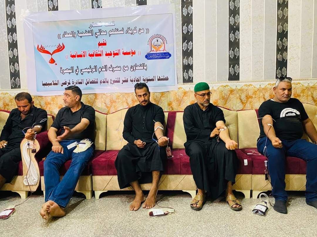 وقال مدير المؤسسة أحمد العطواني: تاسياً بشهداء كربلاء تقيم مؤسسة التوحيد الثقافية وبالتعاون مع مصرف الدم في البصرة هذه المبادرة الإنسانية الواعية كل عام في يوم السابع من محرم الحرام والتي شملت هذا العام الفصائل النادرة التي يكون المرضى بأمس الحاجة لها كونها قليلة جدا حيث تم تخصيص هذه الدماء لمرضى الثلاسيما وأمراض الدم الوراثية ولدعم رصيد مصرف الدم