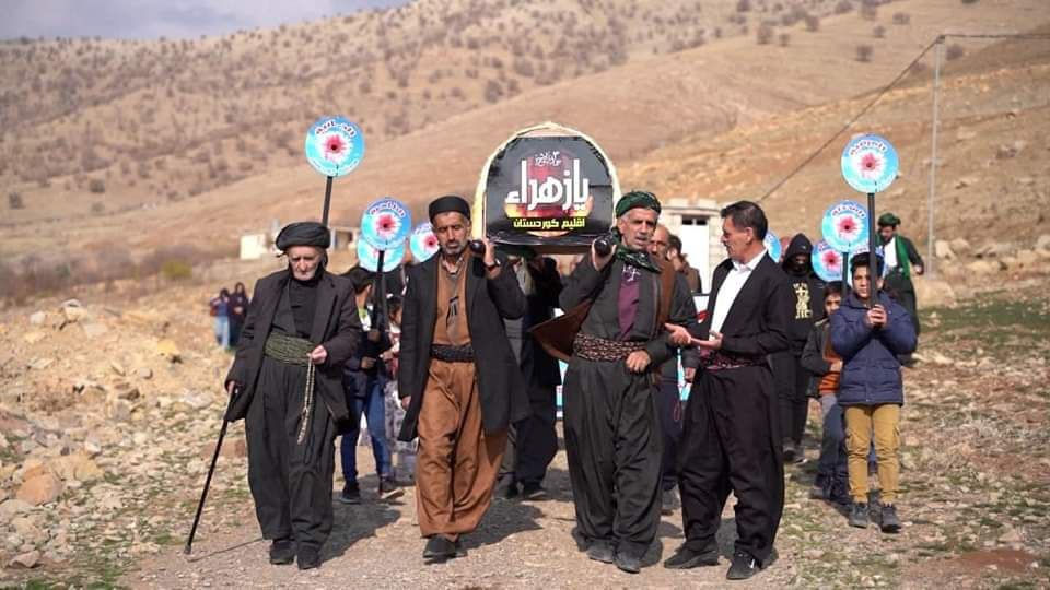 وقال بيان، تلقت ” النعيم نيوز” نسخة منه، “شاركَ جمع من شيعة أهل البيت (ع ) من القومية الكردية بتشييع النعش الرمزي للسيدة فاطمة الزهراء (ع) إحياءً لذكرى شهادتها الأليمة حسب الرواية الثالثة التي دعا لها سماحة المرجع اليعقوبي وخرج المعزّون من الرجال والنساء والأطفال، إلى سفوح الجبال في مسيرة مهيبة، لاستذكار ظلامات وآلام الصديقة الكبرى (ع ) وما قاسته بعد رحيل أبيها رسول الله (ص )”.