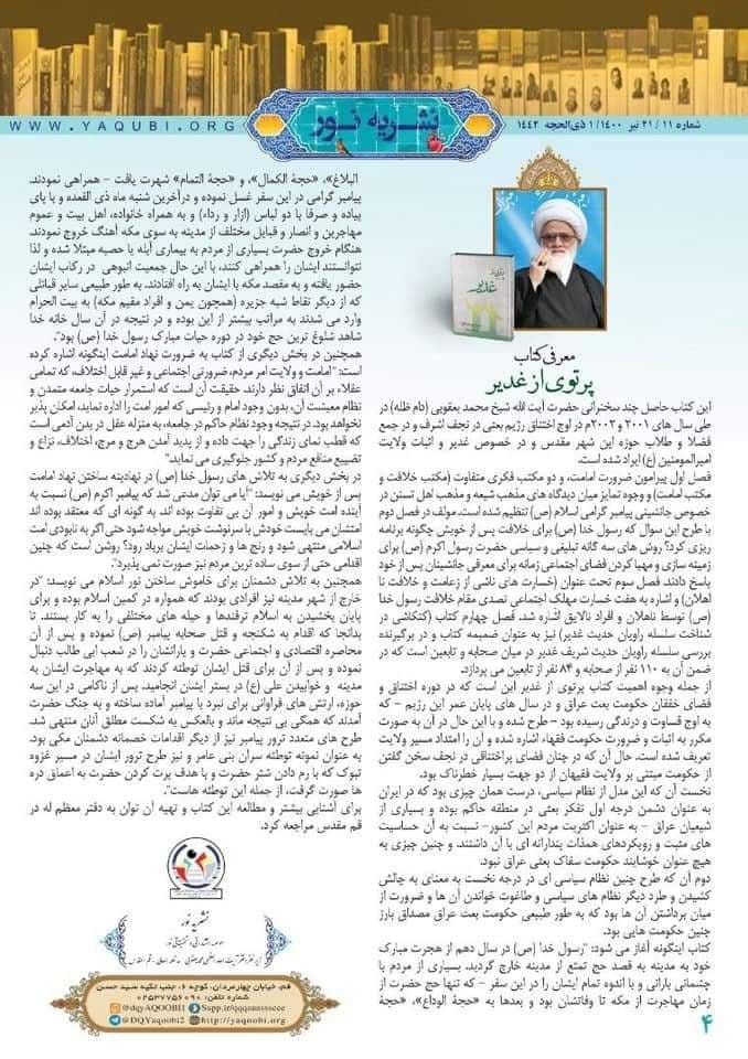 نشرة نور تختص بنشر فكر سماحة المرجع اليعقوبي واخبار مكتبه في مدينة قم المقدسة باللغة الفارسية.
