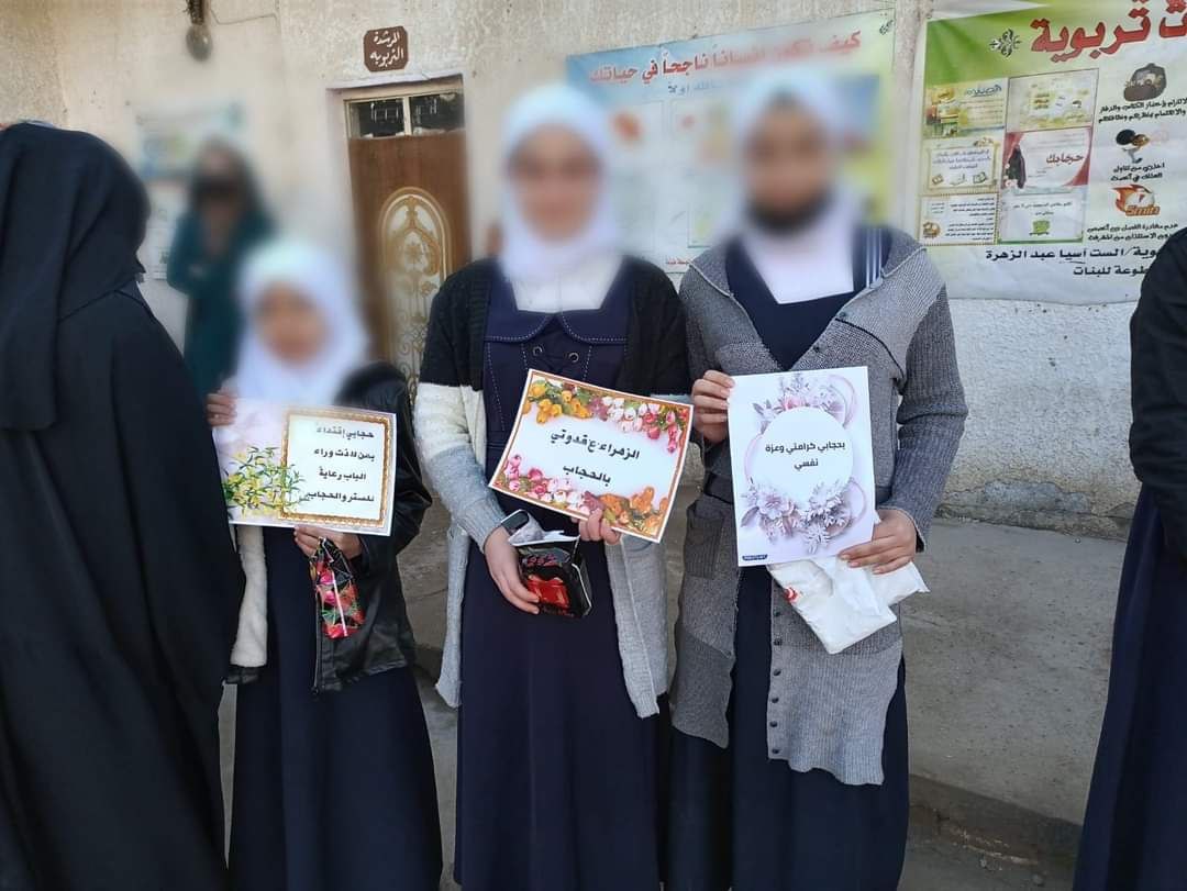 وقالت المبلغات في بيان، تلقت “النعيم نيوز” نسخة منه، ان “البرنامج تضمن اهمية الحجاب وفوائده ومضار السفور اهمية طلب العلم حيث يكون تكامل المرأة بالعلم والخلق دور المرأة بالمجتمع. فضلاً عن تكريم الطالبات المحجبات والطالبات المتميزات وتكريم ادارة المدرسة”.