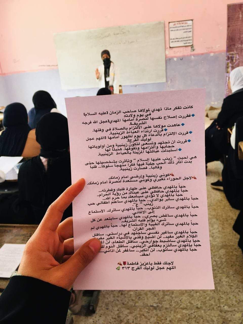 وأكد على”تقوية الجانب الايماني بالله تعالى ٰوكيفية ربط الهدف والغاية من الدراسة بالتمهيد لدولة العدل الالهي قدمتها المبلغة هديل حسين رحيمة”.