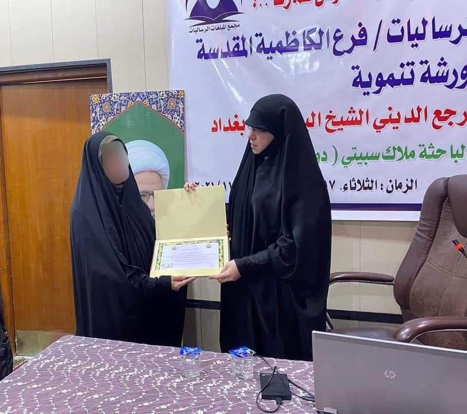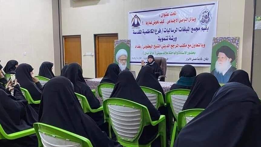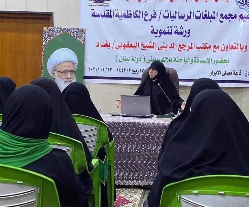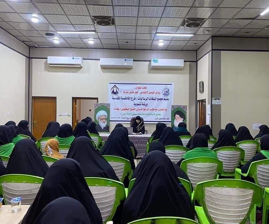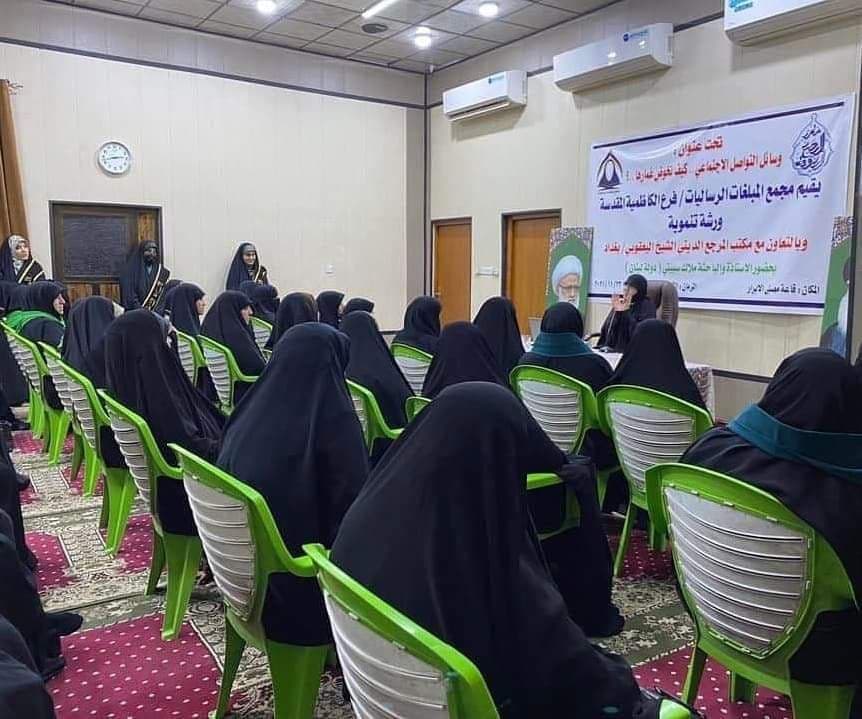 نظم مجمع المبلغات الرساليات في مدينة الكاظمية المقدسة وبالتعاون مع مكتب سماحة المرجع الديني الشيخ محمد اليعقوبي في بغداد المركزي، أمس الجمعة، ورشة تنموية بعنوان (وسائل التواصل الاجتماعي كيف نخوض غمارها)، وبحضور الباحثة ملاك سبيتي من لبنان.