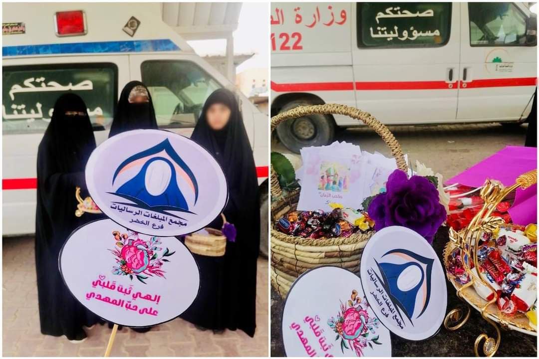 احيا مجمع المبلغات الرساليات في قضاء الخضر ولادة الامام المهدي المنتظر عجل الله فرجه الشريف في عدة اماكن من القضاء.