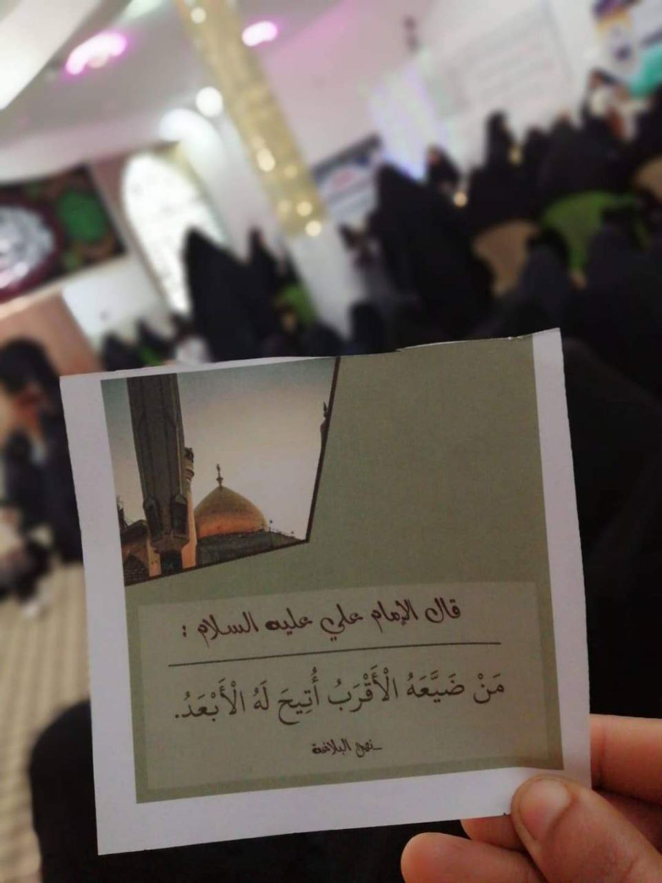 وذكر بيان لمجمع المبلغات، تلقت “النعيم نيوز” نسخة منه، أن “المحفل بدأ بعد الصلاة على محمد وآل محمد، بقراءة القرآن الكريم، ثم كلمة بهذه المناسبة تحدثت عن ولادة أمير المؤمنين، وما هو المطلوب منا نحن الموالين لأمير المؤمنين والاقتداء به والسير على نهج مولانا (ع)”.