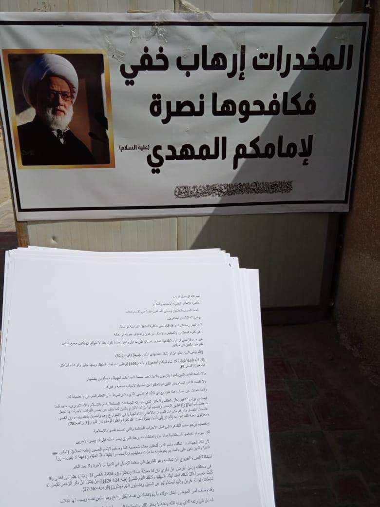 وتابع، “وحث الأخوات على الالتزام بالحجاب الشرعي، والتخلق بأخلاق أهل البيت (عليهم السلام)، وكذلك حثهم على الابتعاد عن المخدرات وعن كل ما لا يرضي الله عز وجل”.