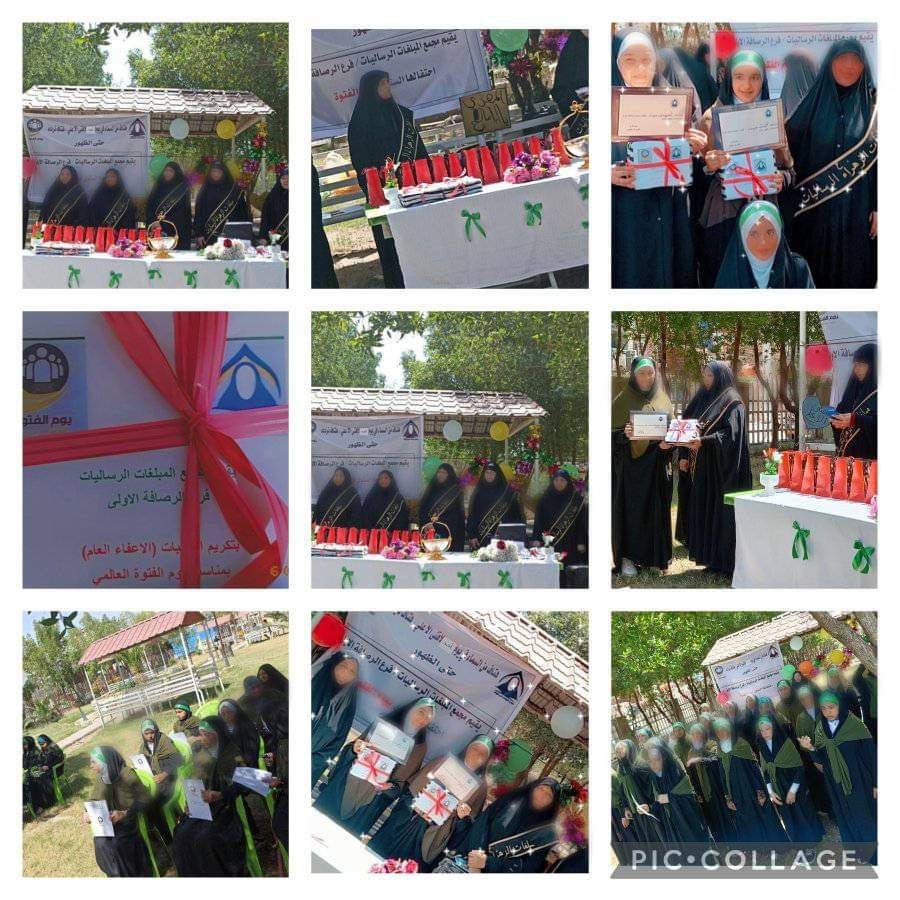 وتابع، “أقام مجمع المبلغات الرساليات في الرصافة الأولى، احتفالاً في متنزه عام ببغداد/العبيدي”، مضيفاً “وتم خلال الحفل تكريم عدد من الطالبات المتفوقات المشمولات بالإعفاء العام أو الفردي، بتقديم شهادات تقديرية وهدايا تشجيعية لهن”.