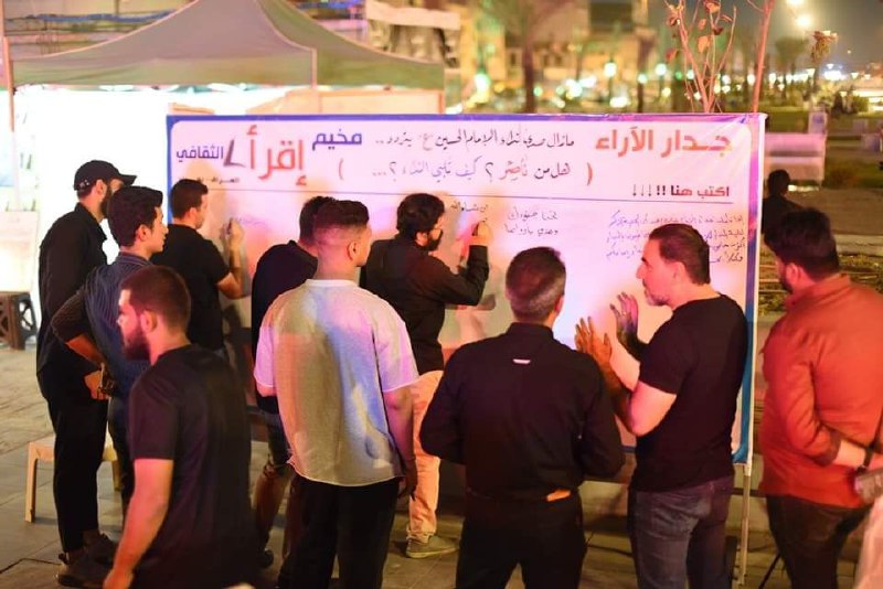 وقال المخيم في بيان، تلقت “النعيم نيوز” نسخة منه، أنه “اطلق مخيم إقرأ الثقافي المبادرة القرآنية ” الامام الحسين عليه السلام قرآن يتلى ” حيثُ تم توزيع صفحات من القرآن الكريم على الجمهور الحاضر الذي اعجب بهذه المبادرة واعتبرها احياء نوعي لذكرى استشهاد الامام الحسين (ع) ونصرة للقرآن الكريم. وقد شهد المخيم حضور شخصيات دينية وسياسية واجتماعية وجماهيرية واسعة ، فيما حضرت مجموعة من المؤسسات الاعلامية والقنوات الفضائية لتغطية الفعاليات|.