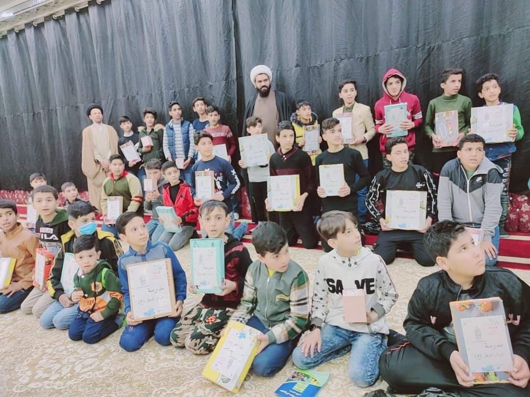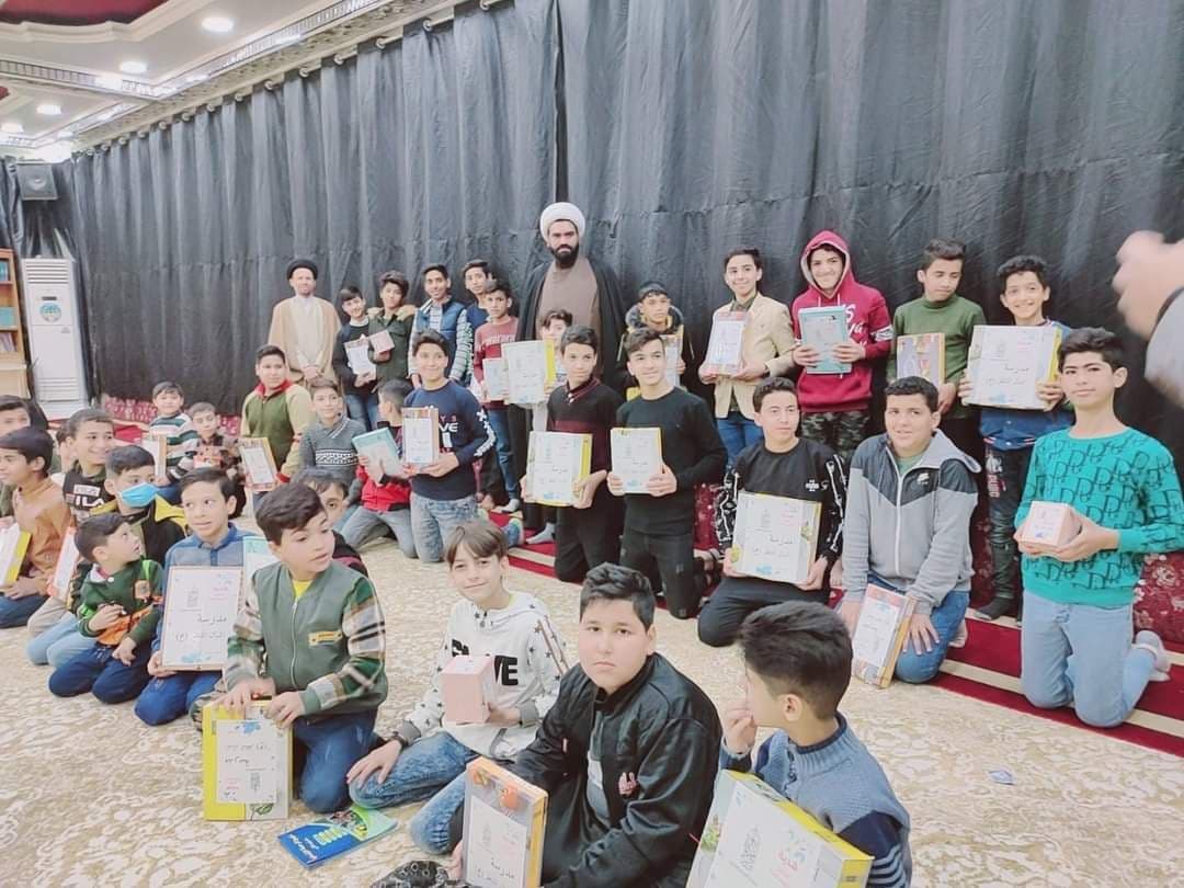 ٤_ تم تكريم المتفوقين بهدايا ثمينة مع كتاب من محاضرات سماحة المرجع الديني آية الله العظمى الشيخ محمد اليعقوبي (دام ظله الوارف)”.