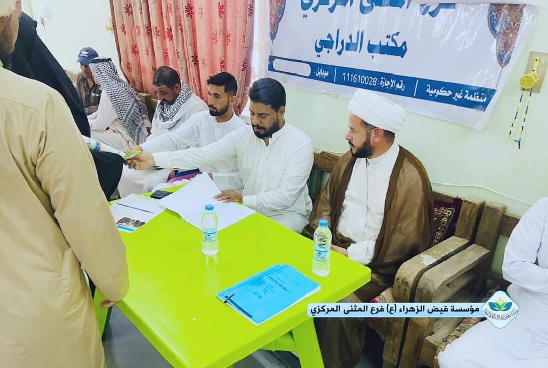 مدير مؤسسة فيض الزهراء المثنى يزور مكتب المؤسسة في ناحية الدراجي ويحضر توزيع المستحقات الشهرية للعوائل الكريمة
