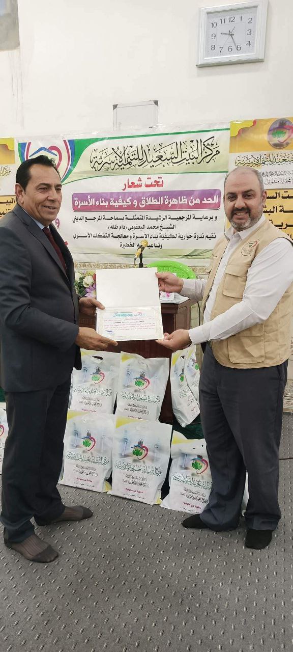 وأشار، إلى أنه “بعدها وزع ضيف المؤسسة المنحة المالية المقدمة من سماحة المرجع الشيخ اليعقوبي (دام ظله). وبعض الكتيبات والمجلات والجرائد والتي تختص حياة زوجية سعيدة مع عباﺀة درجة أولى للنساﺀ”.
