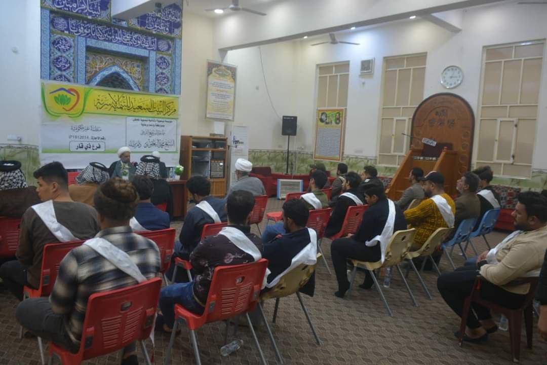 اقام مركز البيت السعيد للتنمية الأسرية وبالتعاون مع مكتب المرجع الديني الشيخ محمد اليعقوبي في ذي قار لقاءه الشهري مع مجموعة من المقبلين على الزواج والمتزوجين الجدد.