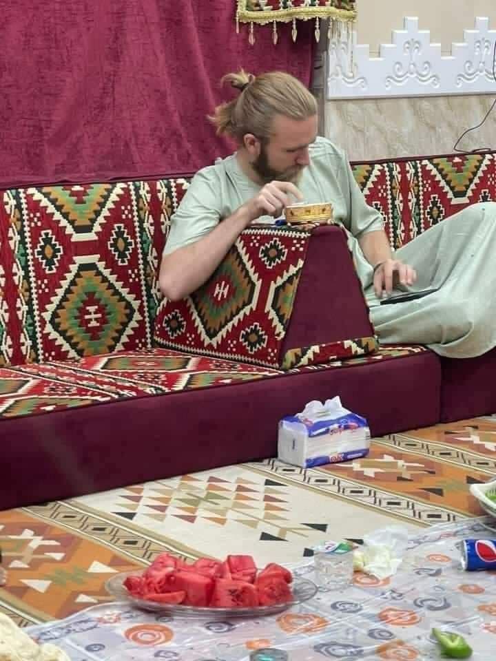 وأضافت، أنه “بعد البحث والتدقيق لم يجد غير السير مشياً إلى أبي الأحرار الإمام الحسين عليه السلام سبيلاً لتحقيق غايته. بصحبة مترجمه الشخصي وصديقه العراقي الذي جاء معه من بريطانيا“.
