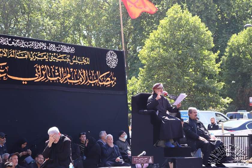 وسط العاصمة البريطانية لندن في العاشر من شهر محرم تجمهرت الحشود المعزية في ساحة لتستذكر واقعة الطف الخالدة واليوم الذي أستشهد به أبي عبد الله الحسين وأولاده وأصحابه (ع).