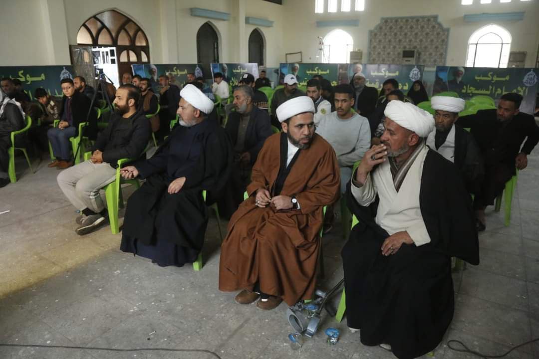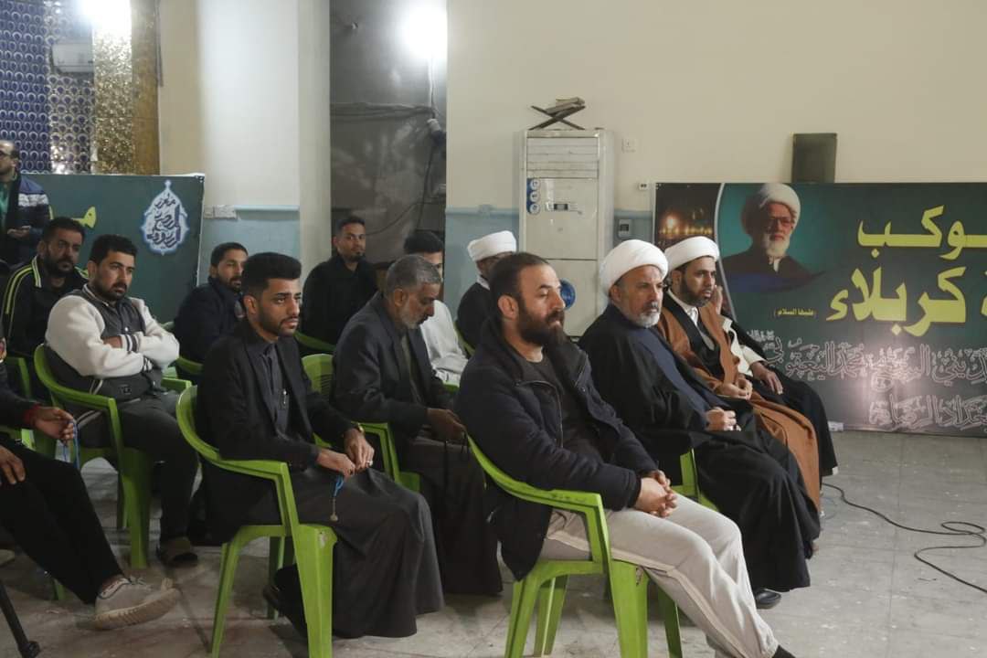 والقى مدير مكتب المرجع اليعقوبي بغداد الرصافة الشيخ مجيد العبودي خلال الإجتماع كلمة توعويه بمناسبة الاستشهاد الامام الكاظم عليه السلام وحثهم على التواصل مع الزائرين بالخدمة الواعية التي تهدف الى السيرة العطرة لاهل البيت ع .