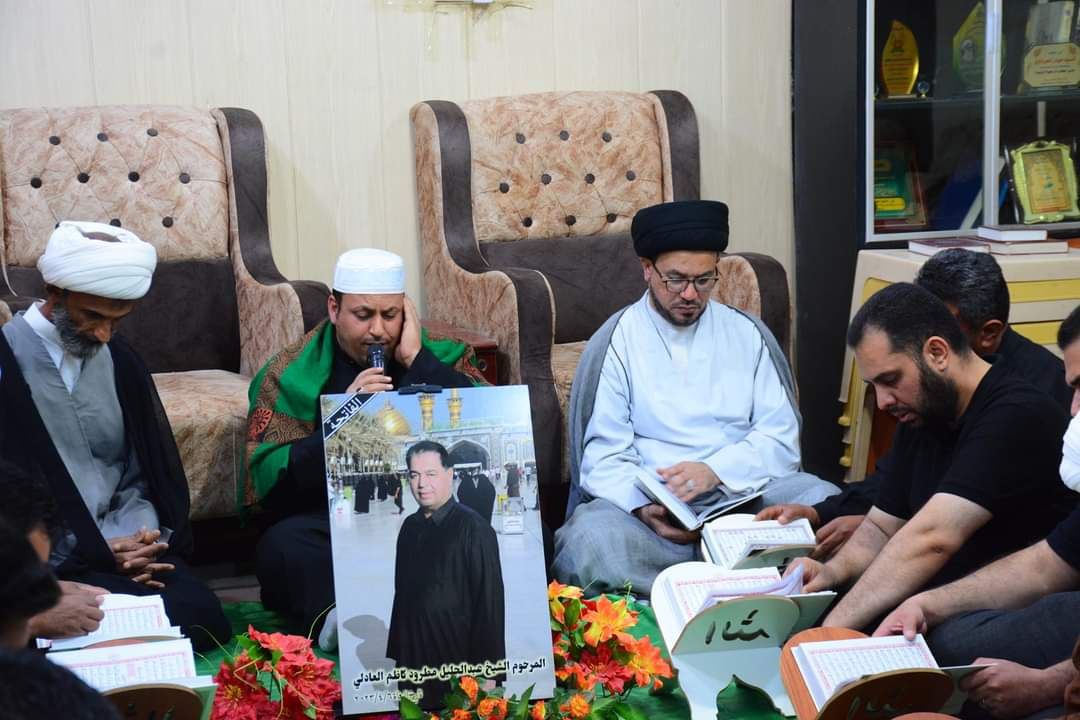 وتابع، أن “الجلسة بدأت بآيات من الذكر الحكيم بصوت القارئ السيد علاء الموسوي، ومن ثم قراءة سورة الفاتحة على روح الفقيد، وقدم السيد حيدر العرداوي والوفد المرافق له، أحر التعازي والمواساة لعائلة العادلي، سائلين الباري عز وجل أن يلهمهم الصبر والسلوان”.