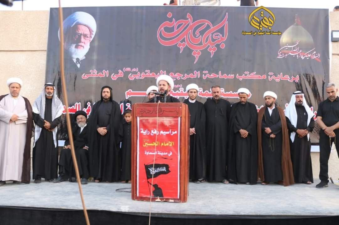 مكتب سماحة المرجع اليعقوبي يقيم مراسيم رفع الراية الحسينية في مدينة السماوة لعام ١٤٤٤هـ. بحضور آلاف المعزين.