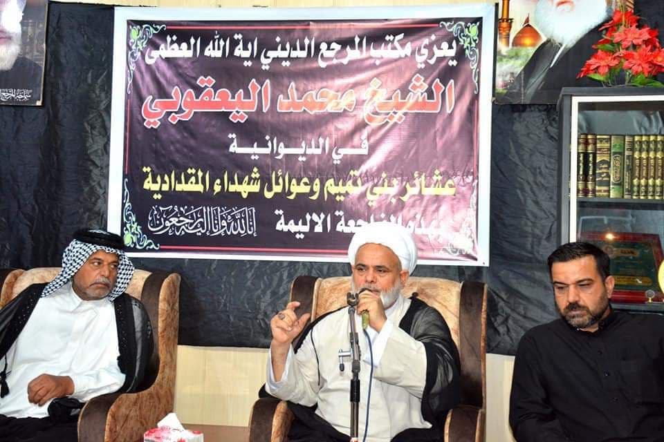 مكتب المرجع اليعقوبي في الديوانية يقيم مجلس عزاء على أرواح شهداء مجزرة المقدادية