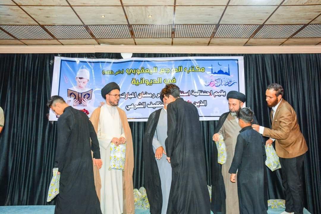 أقام مكتبُ سماحة المرجع الديني الشيخ محمد اليعقوبي في الديوانية محفلاً لاستقبال شهر رمضان المبارك، وتكريم المكلفين بالصيام لأول سنة في حسينية حسن ردام مركز محافظة الديوانية تشجيعا لهم على أداء هذه الفريضة المباركة.