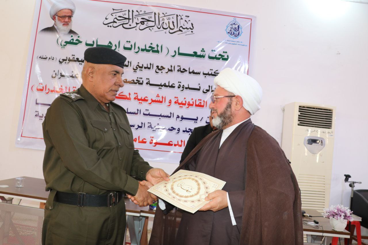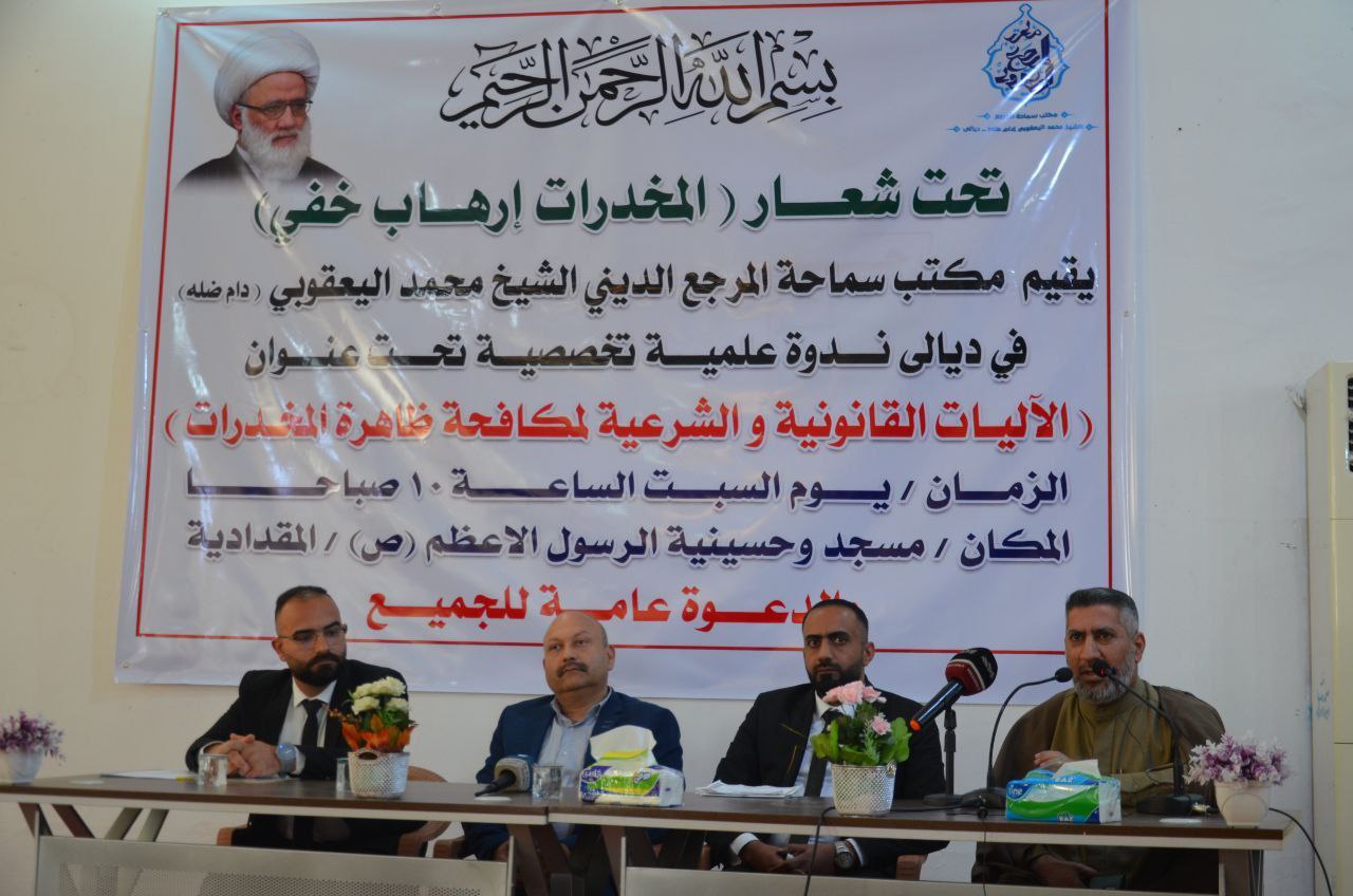 مكتب المرجع اليعقوبي في ديالى يقيم ندوة بعنوان (الآليات القانونية والشرعية لمكافحة ظاهرة المخدرات)