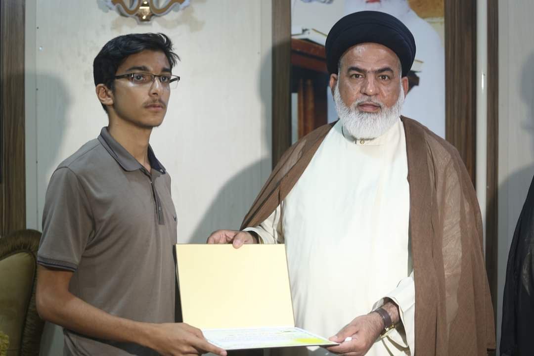 من جانبه ابتدأ مدير مكتبُ المرجعية السيد الزاملي كلامه بالشكر والثناء على الجهود والرعاية الأبوية لأدارة وأساتذة المدرسة التي يقدموها لطلبتنا الأعزاء بارك لهم وللطلبة الاعزاء هذا التميز والفوز داعياً لهم بالمزيد من التوفيق.