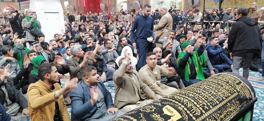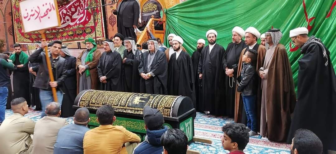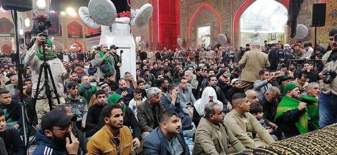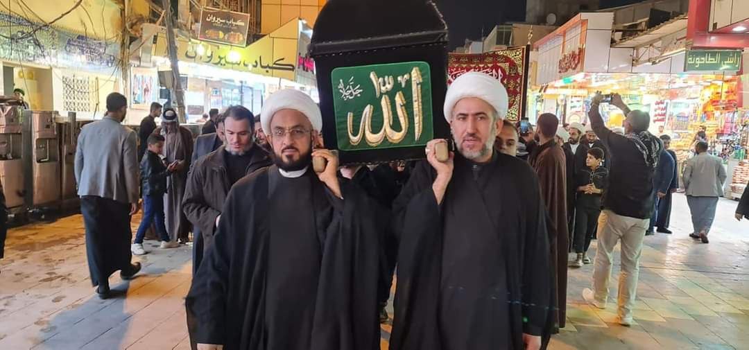 وانطلقت المواكب بنعشها ورايات الحزن وصيحات المؤمنين بذكرها والعهد لها ولاودها ع إلى مرقد أمير المؤمنين ع واقامت المواكب مجلسا فاطميا داخل الصحن الشريف.