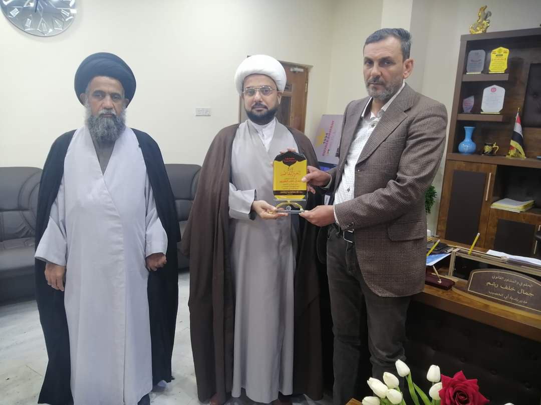 وقد قام وفد من الممثلية ضم كلا من فضيلة الشيخ علي التميمي – ايده الله – مسؤول الممثلية وفضيلة السيد مصطفى الموسوي – ايده الله – بمعية بعض من أبناء المرجعية الرشيدة بتقديم الدرع إلى السيد مدير بلدية ابي الخصيب تثمينا لجهوده وجهود كوادر البلدية المبذولة في خدمة القضاء
