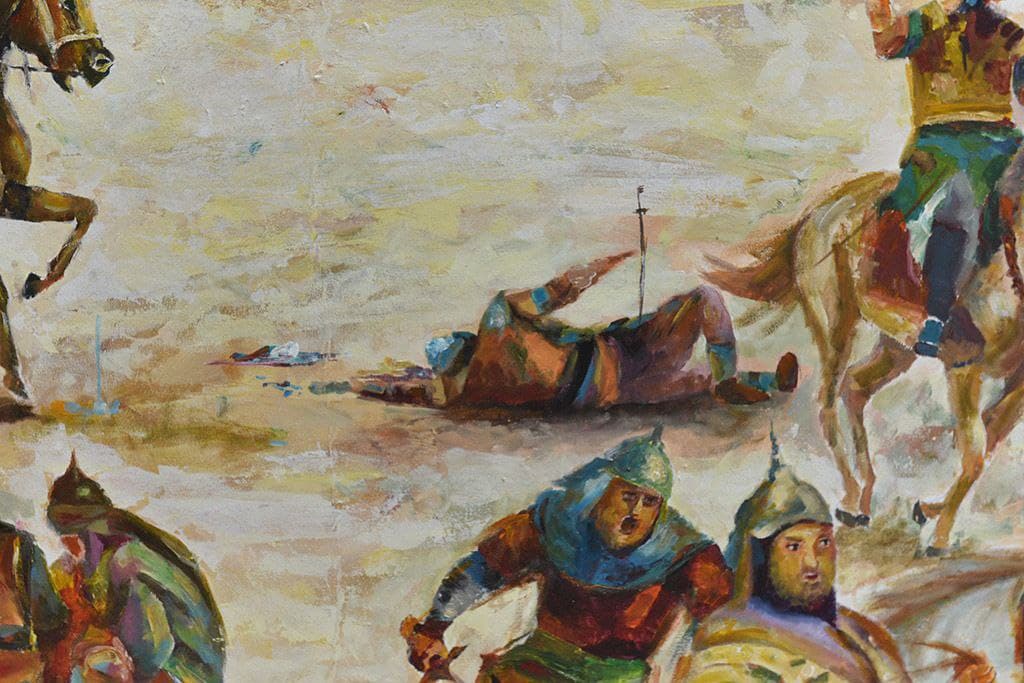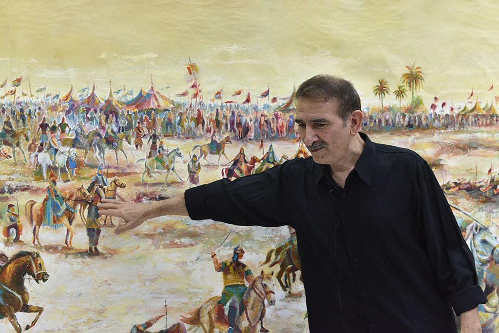 في آخر روائعه الفنية جسد الفنان التشكيلي المعروف منير الحجي بريشته الذهبية ملحمة كربلاء التاريخية في لوحة فنية بعنوان ”من القطيف إلى كربلاء“.