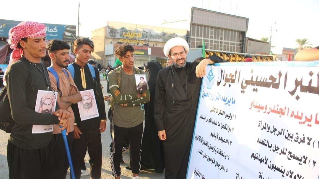 وأفاد بيان لموكب الصادقين، تلقت “النعيم نيوز” نسخة منه، بأن “الموكب مستمر بخدمة الزوار الكرام بعدة فعاليات ونشاطات، بالتنسيق مع مكتب المرجعية الدينية، منها الإجابة عن أسئلة الزائرين الفقهية والعقائدية، فكرة المنبر الجوال الشيخ فراس العبيدي، وكان عنوان كلامه مع الزائرين حول موضوعة الجندر، كاريكاتير للفنان خالد الزيدي”.