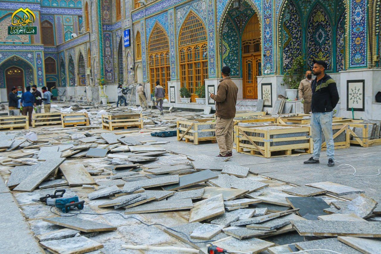 وتابعت، “وذلك لاحتياج المشهد الكاظمي إلى مد أنابيب الماء والصرف الصحي والقابلوات الكهربائية وخطوط الاتصالات وغيرها. وإعداداً لإكساء أرضية الصحن والأواوين بمرمر الثاسيوس عالي الجودة مشابه لمرمر الحرم المكي والحرم المدني”.
