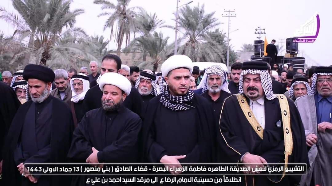 أعلنت ممثلية سماحة المرجع الديني الشيخ محمد اليعقوبي (دام ظله) في قضاء الصادق، اليوم الثلاثاء، عن إقامة تشييع رمزي مهيب، لنعش السيدة الزهراء (ع)، وذلك استمراراً بإحياء ذكرى شهادة السيدة الزهراء (ع) في عدد من أقضية محافظة البصرة.
