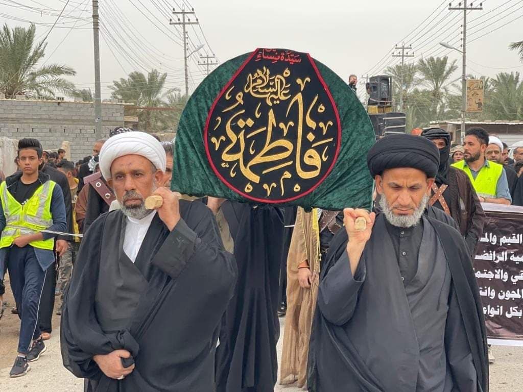 بالصور.. ممثلية المرجع اليعقوبي في الصادق تقيم تشييعاً رمزياً لنعش السيدة الزهراء (ع)