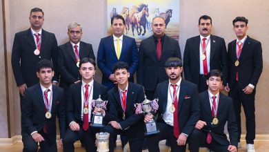 كرم رئيس اللجنة الأولمبية الوطنية العراقية عقيل مفتن، اليوم الإثنين، وفد المنتخب العراقي لتنس كرة القدم، المتوج بالوسامين العالميين، في…